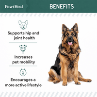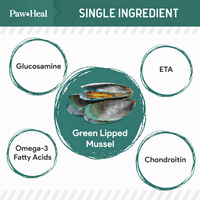 • Paw + Heal’s green-lipped mussel supplement aids with joint and ligament health.