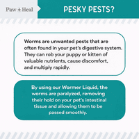 - Paw + Heal’s wormer liquid for puppies and kittens can help with roundworms.